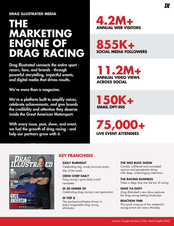 Drag Illustrated connects the entire sport- racers, fans, and brands- through powerful storytelling, impactful events, and digital media that drives results.